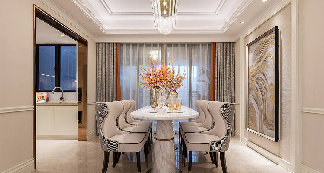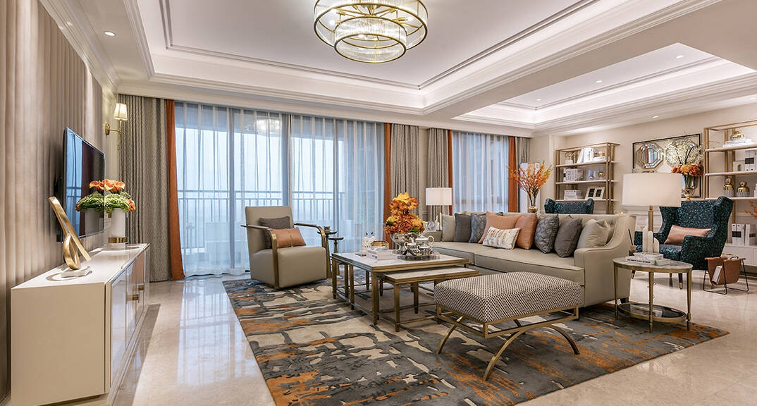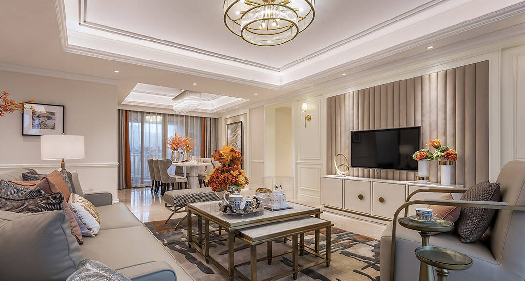 本案為簡美風格,簡美風格即是簡約美式風格,裝飾韻味既含有古典美式的華貴又有現代風格的簡約,運用清亮的色彩,從硬裝到軟裝追求空間的干凈與利落,不做復雜的空間布局,讓室內充滿溫馨和舒適的感覺,帶給人休閑式的浪漫生活。