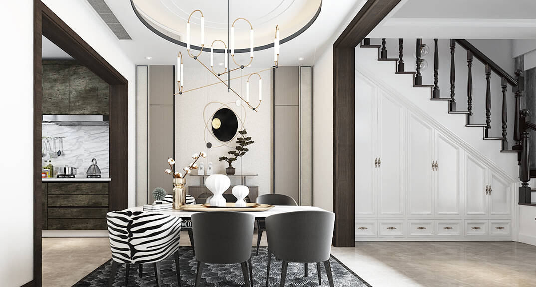 新中式風(fēng)格的餐廳巧妙的融合古典元素與現(xiàn)代元素,不僅滿足了現(xiàn)代人對(duì)古典的追求,還緊跟現(xiàn)代潮流的步伐,去除繁復(fù)的裝飾,于細(xì)節(jié)處下筆,設(shè)計(jì)風(fēng)格莊重而內(nèi)斂,給人溫馨、明亮、潔凈的視覺(jué)感受。