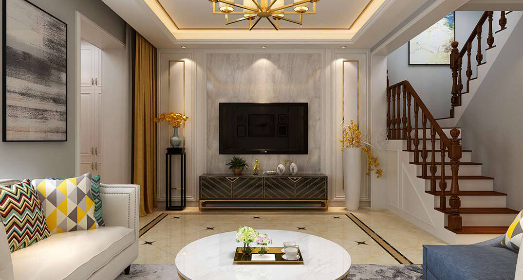 寶龍大沽河藝術村136m2美式風格客廳裝修案例