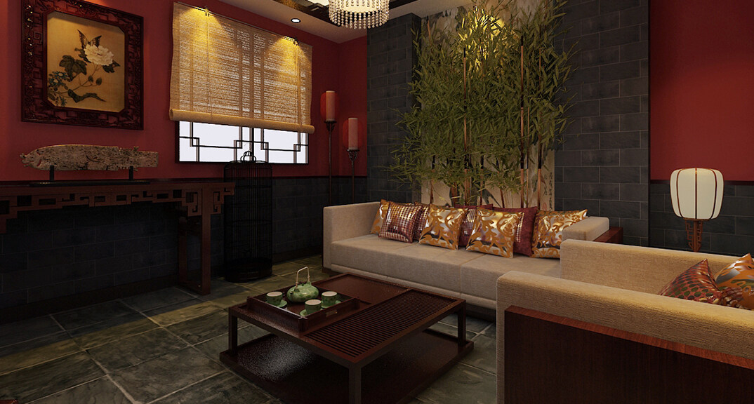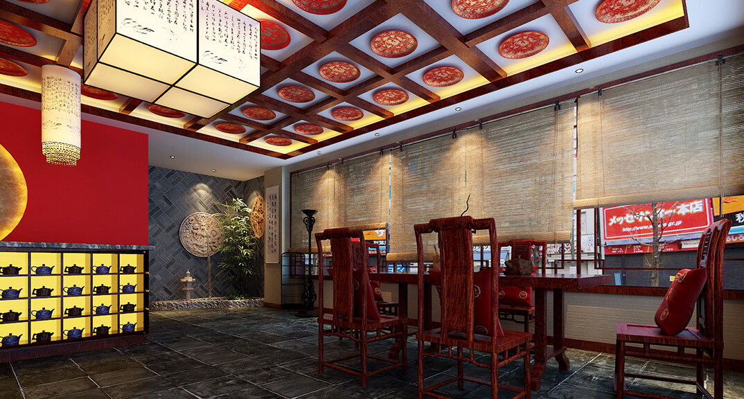 茶樓裝修200㎡茶室中式風(fēng)格案例效果圖-夏紅