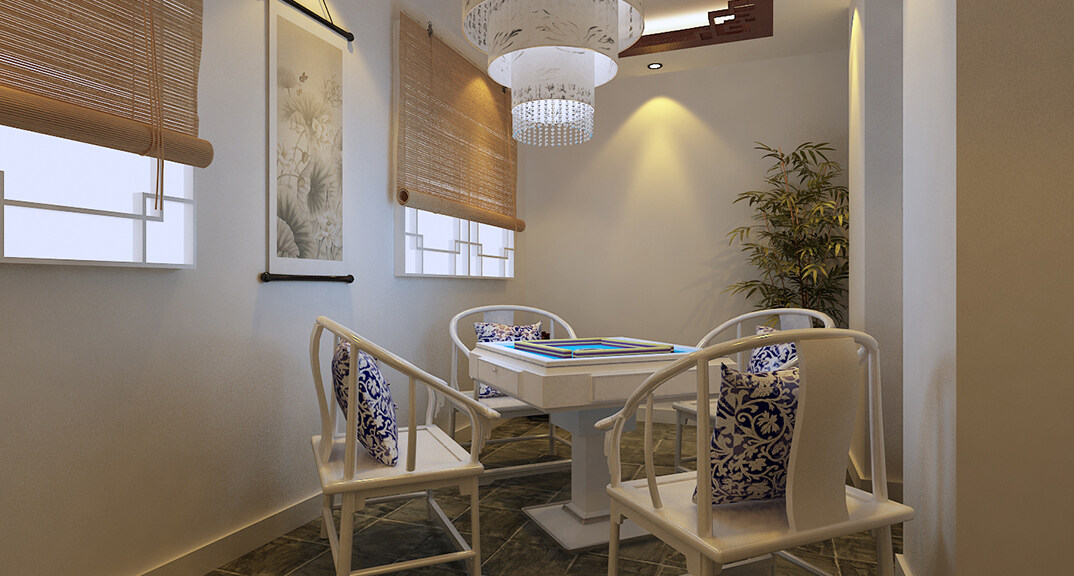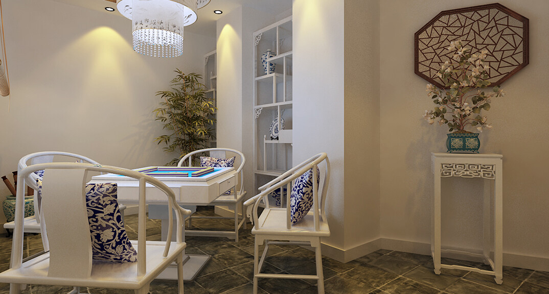 茶樓裝修200㎡茶室棋牌室中式風(fēng)格案例效果圖-冬青