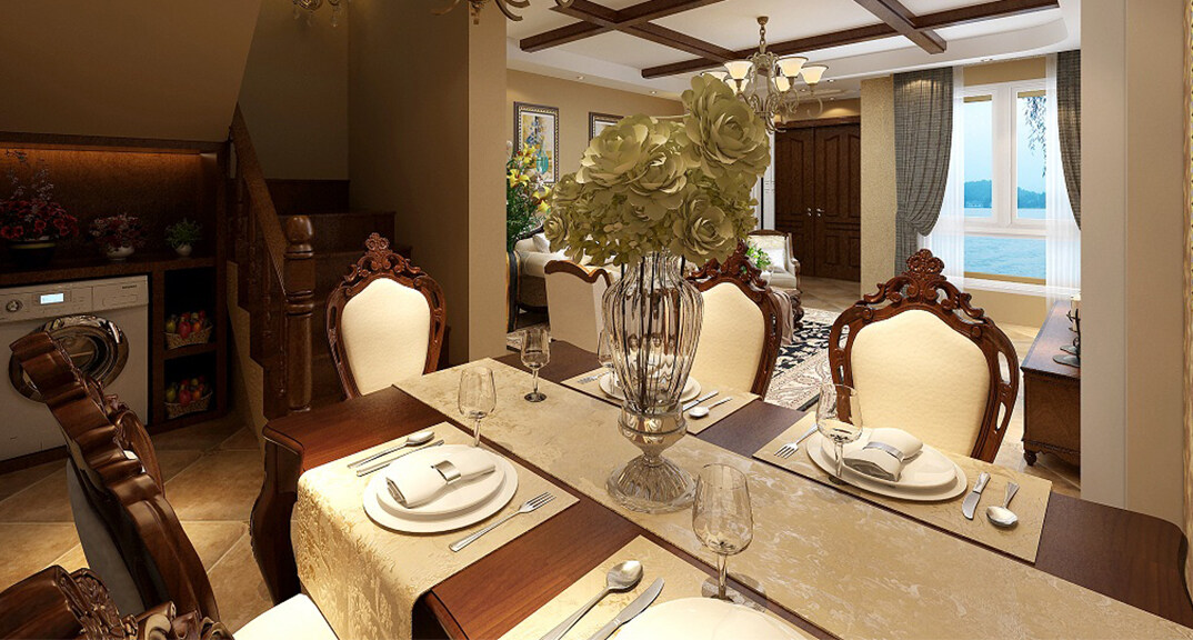 天一仁和郡172㎡別墅餐廳美式風(fēng)格裝修案例效果圖