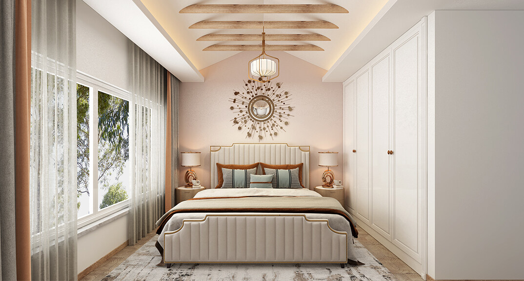 融創(chuàng)紅島壹號(hào)院207㎡別墅次臥侘寂風(fēng)格裝修案例效果圖