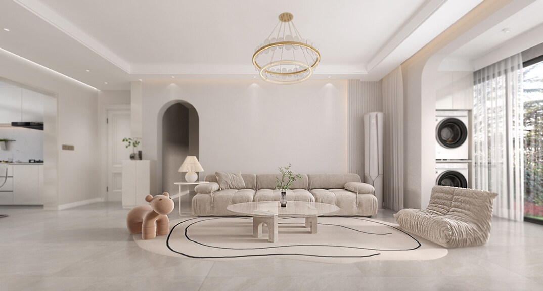 青建依山半島103㎡三室兩廳客廳簡約風(fēng)格裝修案例效果圖