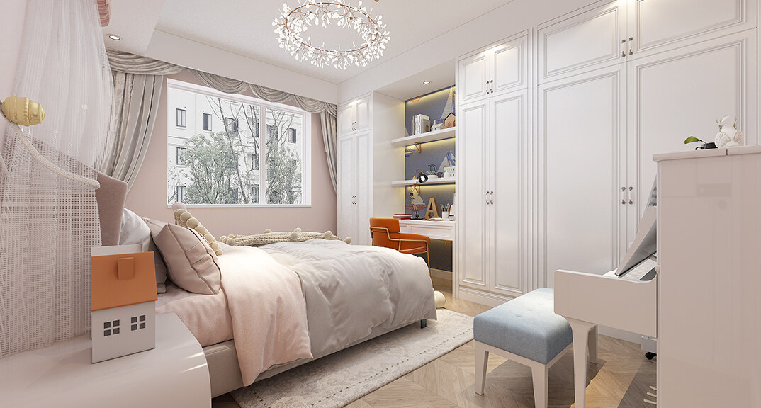 中海藍(lán)庭106㎡三室兩廳女兒房輕奢風(fēng)格裝修案例效果圖