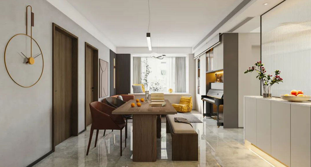 金域華庭110㎡三室兩廳鋼琴室輕奢風格裝修案例效果圖