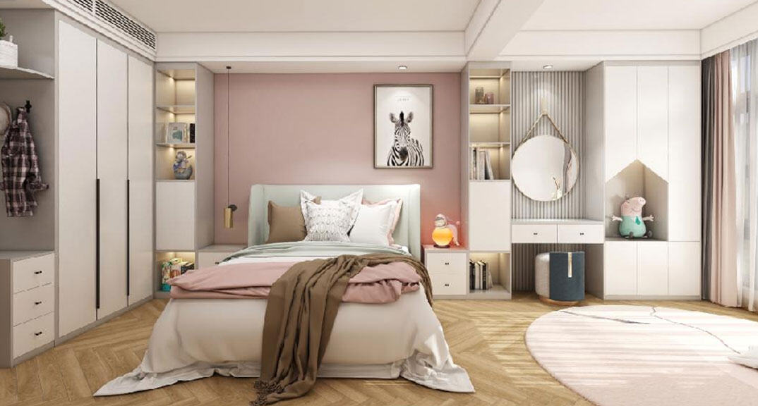 金域華庭110㎡三室兩廳臥室輕奢風格裝修案例效果圖