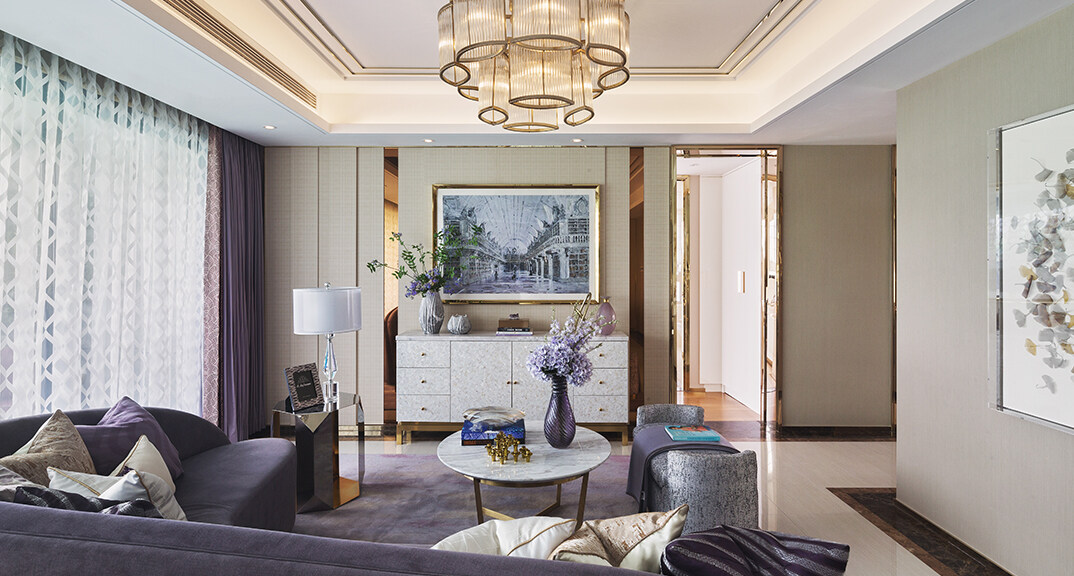 青特星城142㎡三室兩廳客廳簡(jiǎn)歐風(fēng)格裝修案例效果圖