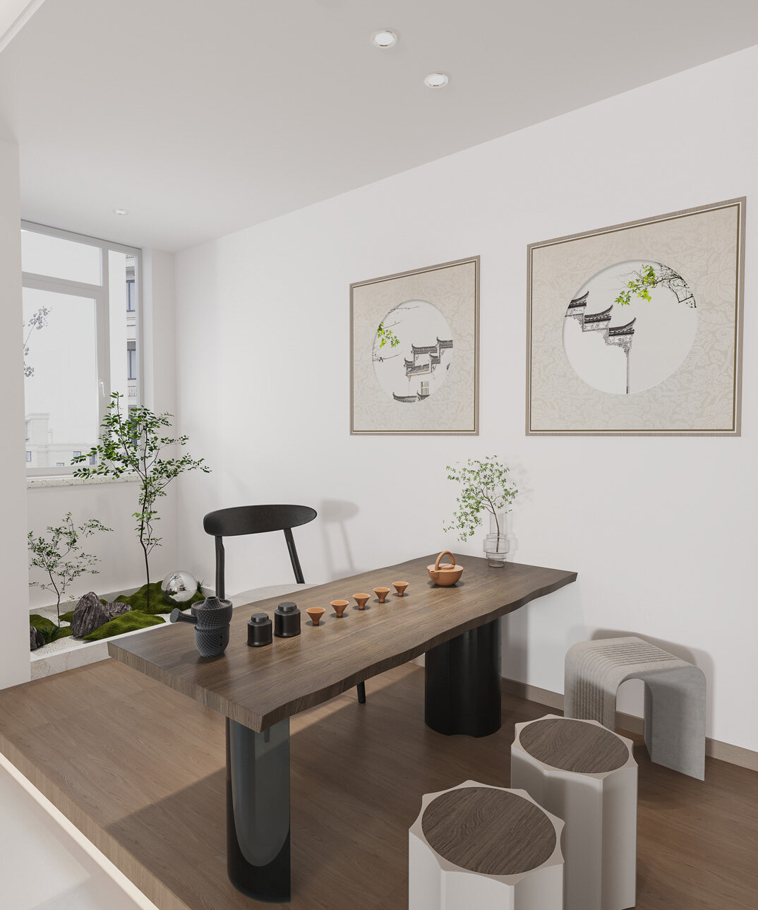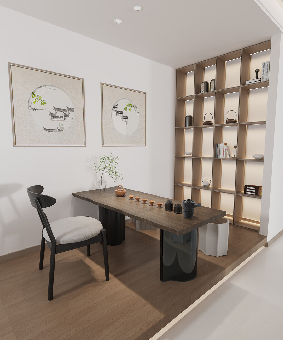 東岸世家167㎡三室兩廳茶室現(xiàn)代極簡風格裝修案例效果圖