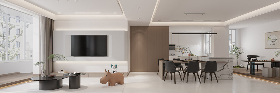 東岸世家167㎡三室兩廳客餐廳現(xiàn)代極簡風格裝修案例效果圖