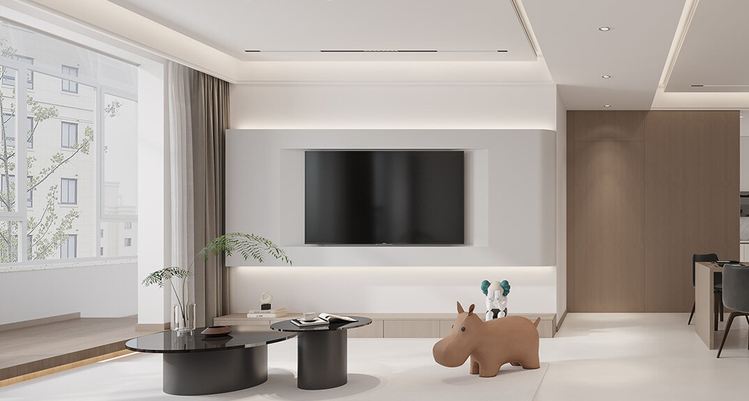 東岸世家167㎡三室兩廳客廳電視現(xiàn)代極簡風格裝修案例效果圖