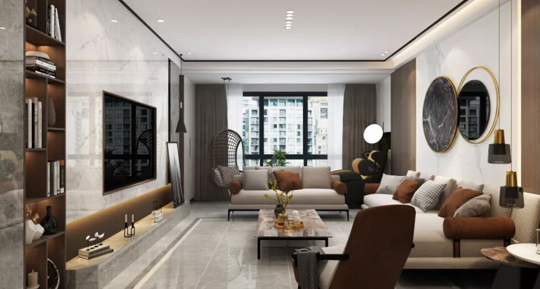 錦華御府169㎡三室兩廳客廳電視走廊現代輕奢風格裝修案例效果圖