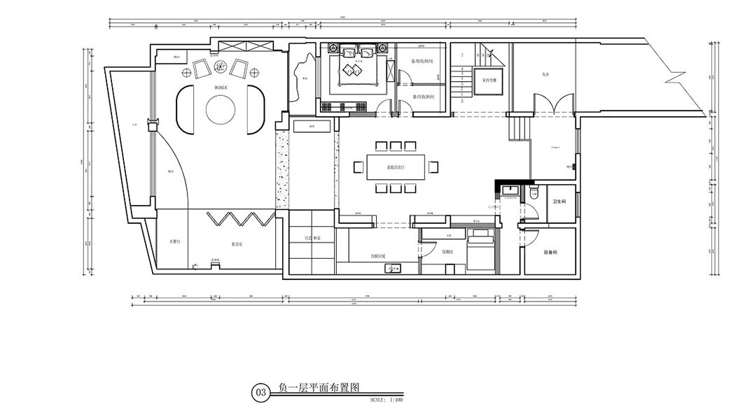 縵沙半島660㎡別墅負一層戶型平面布局圖
