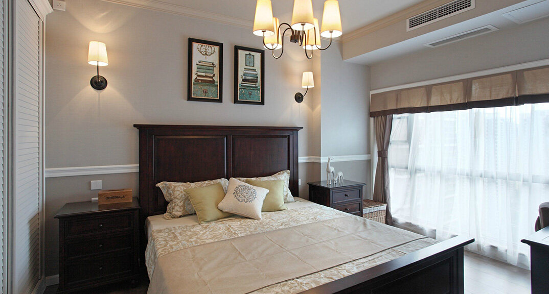 檀府300㎡別墅次臥現(xiàn)代美式風(fēng)格裝修案例效果圖