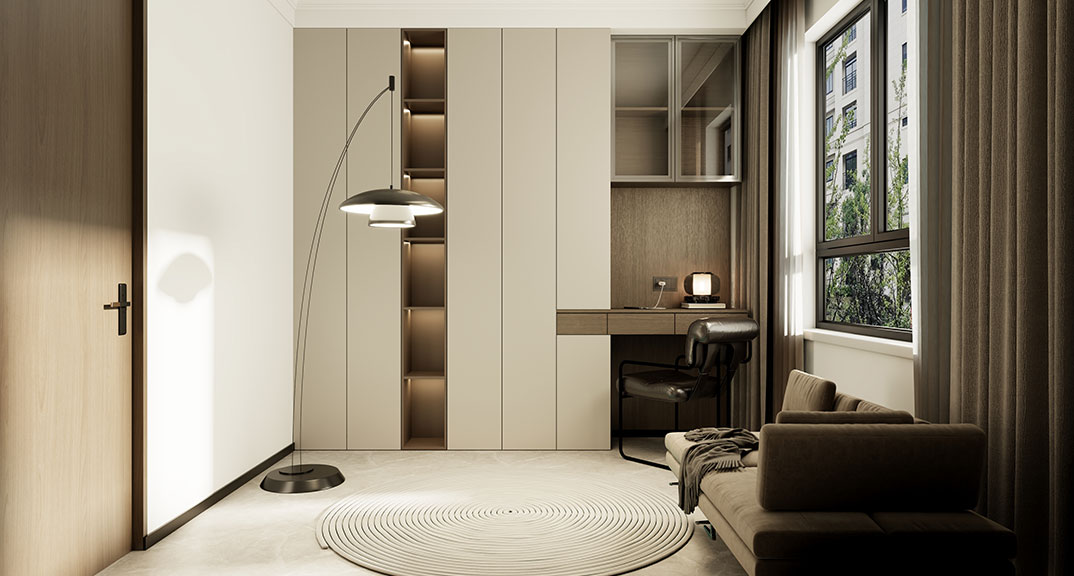 悅動(dòng)灣109㎡三室兩廳書(shū)房現(xiàn)代簡(jiǎn)約風(fēng)格裝修案例效果圖