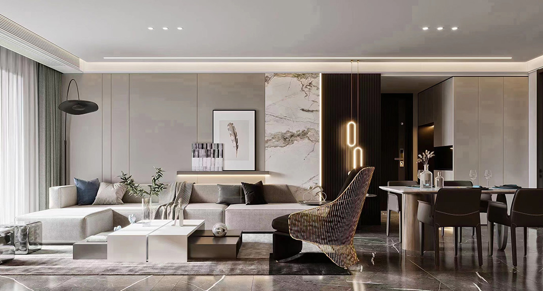 本案設(shè)計(jì)風(fēng)格為現(xiàn)代簡(jiǎn)約風(fēng)格,首先從拾掇空間開始,充分解析原空間的優(yōu)缺點(diǎn),打散原有空間布局,重新組合構(gòu)建,盡可能的讓公共空間敞開通透。在設(shè)計(jì)中,結(jié)合業(yè)主的想法,以生活的溫度為線索,通過多種材質(zhì)的配比,去呈現(xiàn)空間的溫情與關(guān)懷