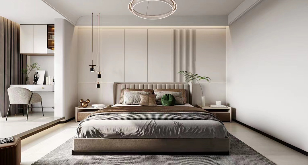 融創(chuàng)逸山136㎡三室兩廳臥室現(xiàn)代簡(jiǎn)約風(fēng)格裝修案例效果圖
