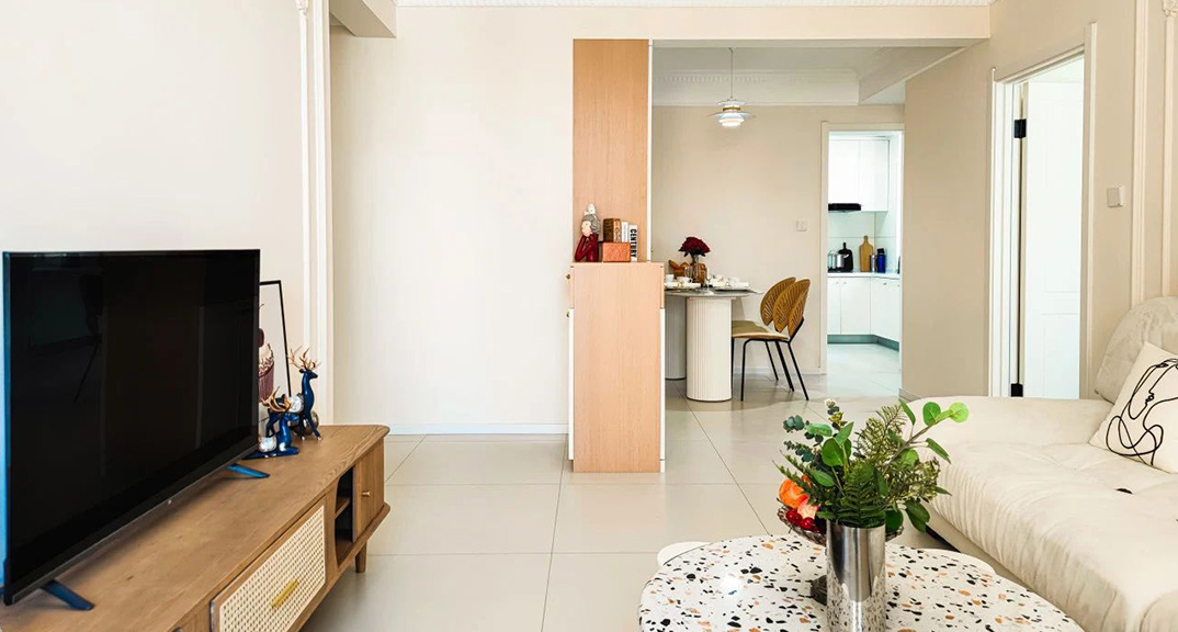 大都匯75㎡兩室兩廳客廳電視奶油風裝修案例效果圖