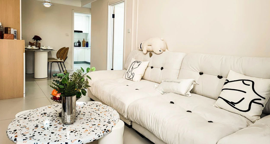 大都匯75㎡兩室兩廳客廳沙發(fā)奶油風裝修案例效果圖