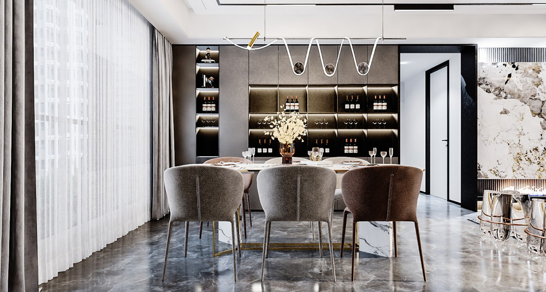 君悅府132㎡三室兩廳餐廳輕奢風(fēng)格裝修案例效果圖