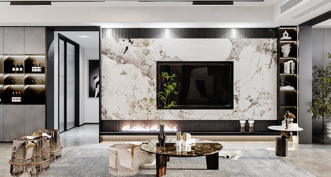 君悅府132㎡三室兩廳客廳電視輕奢風(fēng)格裝修案例效果圖