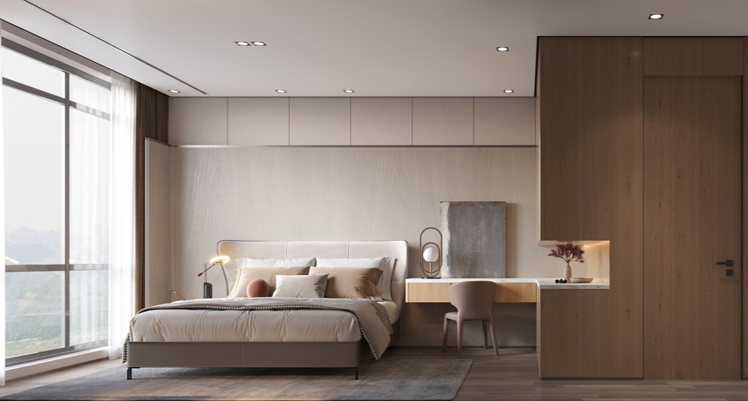 整體設(shè)計以深灰色、黑色為主色調(diào),搭配木飾面、原木地板和金屬裝飾,營造沉穩(wěn)內(nèi)斂的現(xiàn)代風(fēng)格。同時,注重空間的功能性和實用性,滿足業(yè)主及父母日常生活和休閑娛樂需求,打造舒適便捷、低調(diào)奢華的理想居所。