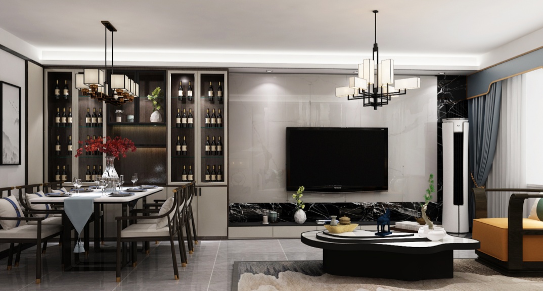 餐廳與客廳在一個(gè)空間統(tǒng)一處理,滿足會(huì)客就餐功能;進(jìn)門做開放式廚房,增加廚房操作空間,增加早餐導(dǎo)臺(tái);主臥開間比較大,床對(duì)面做定制衣柜,主衛(wèi)改成衣帽間,增加收納;兒童房及客房用定制衣柜,榻榻米增加收納空間,滿足學(xué)習(xí)及休息空間;陽(yáng)臺(tái)設(shè)置洗衣機(jī),增加學(xué)習(xí)區(qū)。