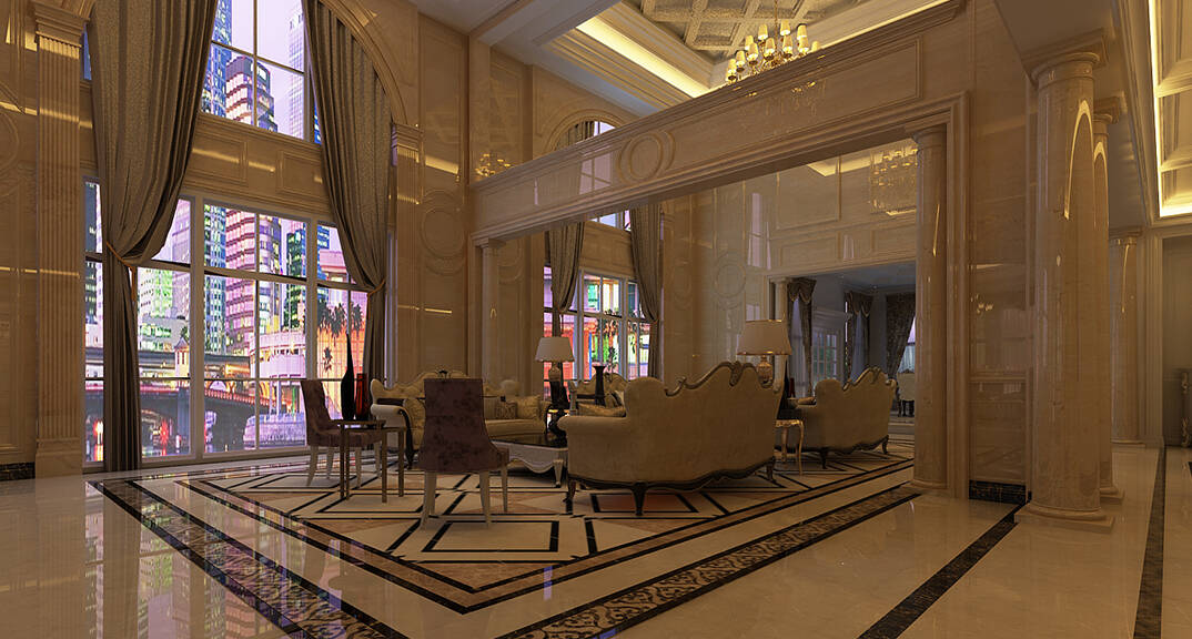 麥島金岸2000㎡別墅一樓客廳簡歐風(fēng)格裝修案例效果圖