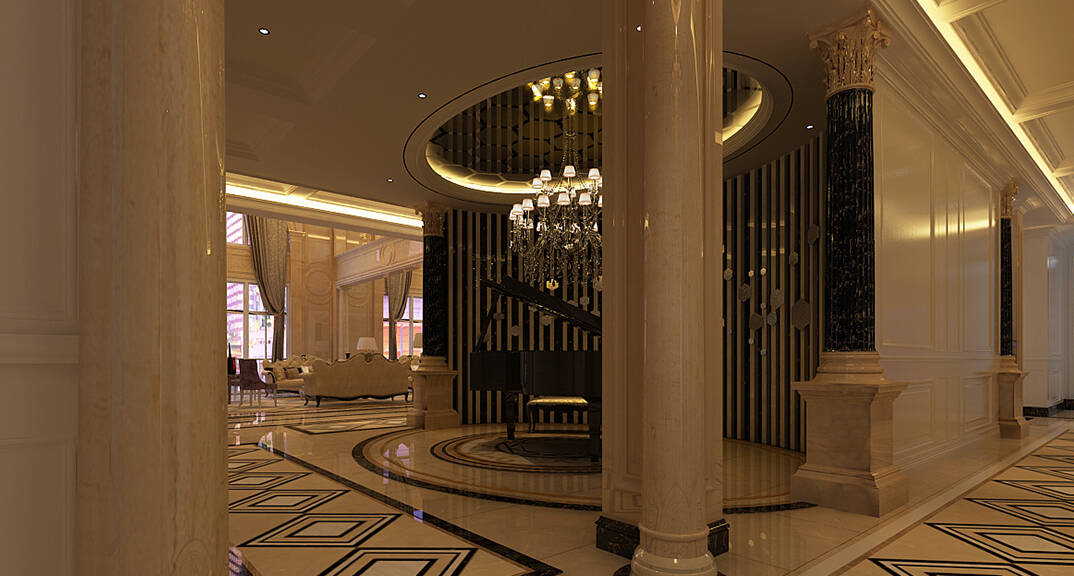 麥島金岸2000㎡別墅入戶門廳簡歐風(fēng)格裝修案例效果圖