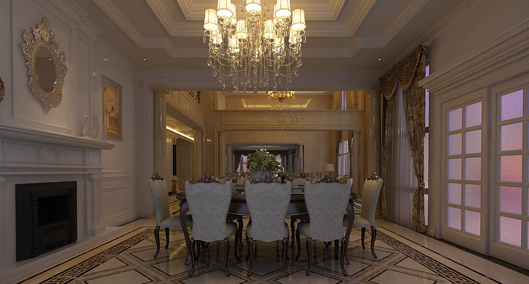 麥島金岸2000㎡別墅一樓餐廳簡歐風(fēng)格裝修案例效果圖