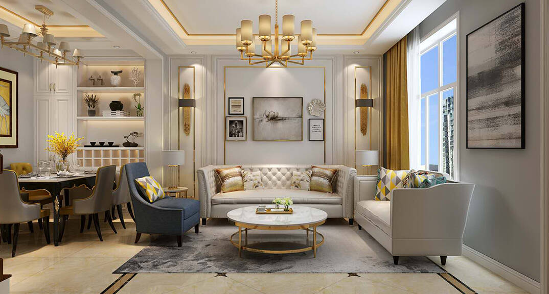 寶龍大沽河藝術(shù)村136m2美式風格客廳裝修案例