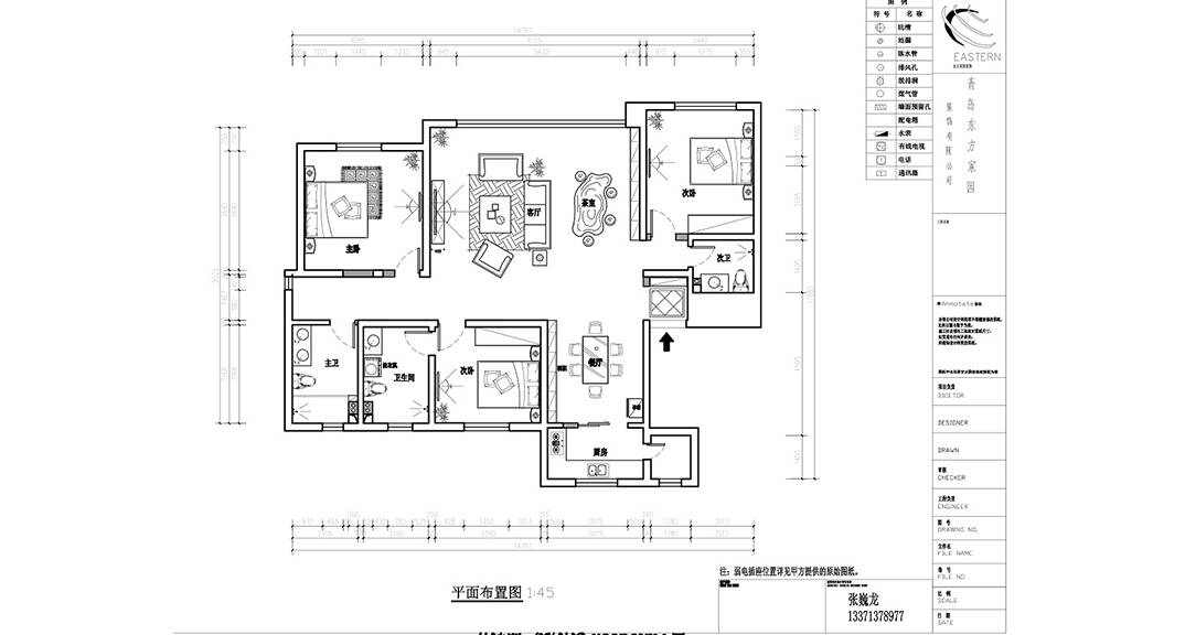 本案將中國文化因素施以現(xiàn)代手法予以表現(xiàn),賦予深刻的傳統(tǒng)文化內(nèi)涵。男主人為商人,比較喜歡實(shí)木,對(duì)傳統(tǒng)文化元素尤為喜愛,因?yàn)榧依锖⒆有。詫?duì)于整個(gè)空間的營造氛圍要求獨(dú)到,家里空間色調(diào)要求整體簡單明快,同時(shí)突出傳統(tǒng)根基,意境與內(nèi)涵,在簡單中體現(xiàn)細(xì)節(jié),在細(xì)節(jié)中透著穩(wěn)重的氣息。整個(gè)空間需要沉穩(wěn)大氣,線條簡練流暢,將水景,竹意,生機(jī)等體現(xiàn)傳統(tǒng)中式精華元素已入家中,明快的墻身,深色的木飾線條韻味深遠(yuǎn),古樸自然,使整個(gè)家里充滿中式的古色,但同時(shí)清新脫俗,低調(diào)精致,意境盎然同時(shí)硬朗、干練而生動(dòng)。