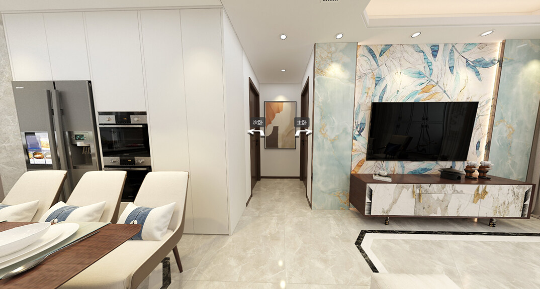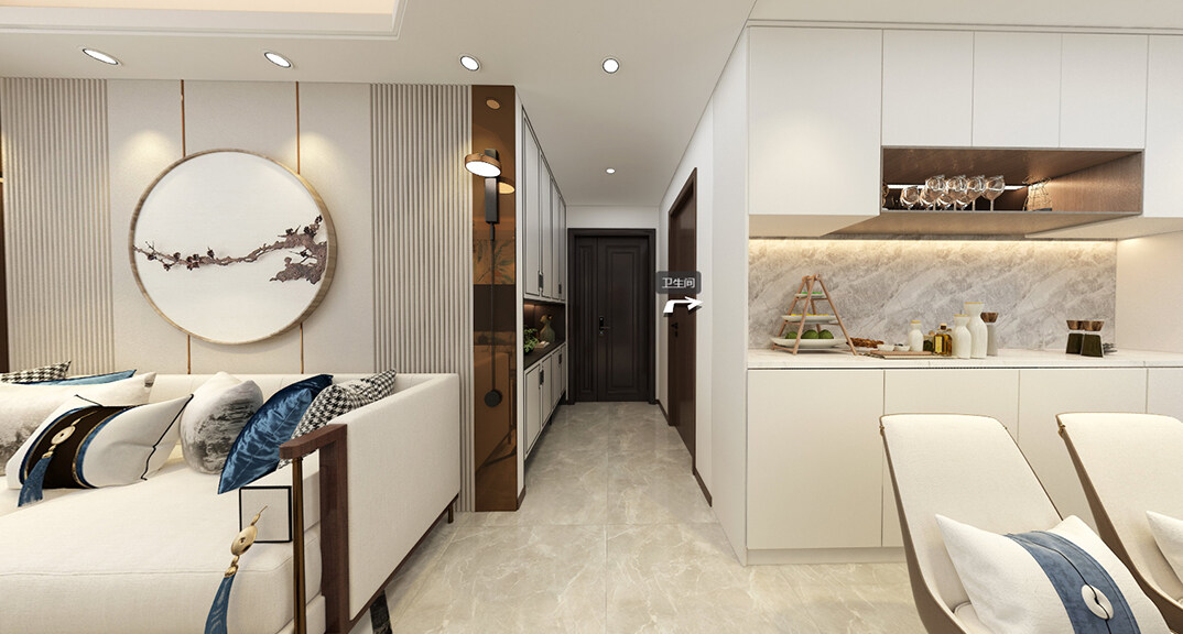 青安·海悅居86㎡二室二廳客餐廳新中式風格裝修案例效果圖
