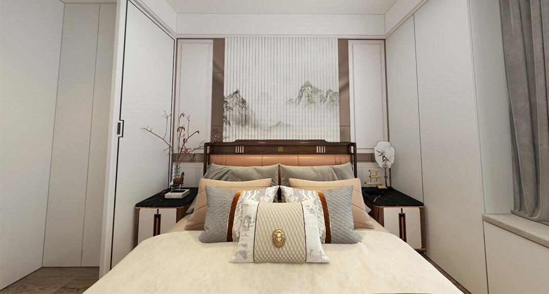 青安·海悅居86㎡二室二廳主臥新中式風格裝修案例效果圖