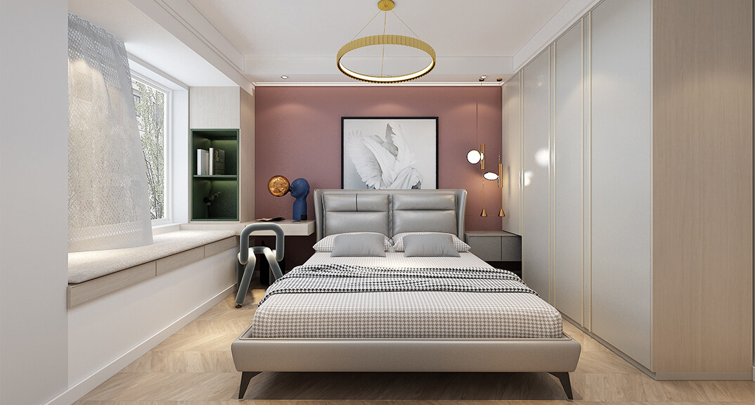 越秀天悅海灣97㎡三室一廳臥室現(xiàn)代輕奢風(fēng)格裝修案例效果圖