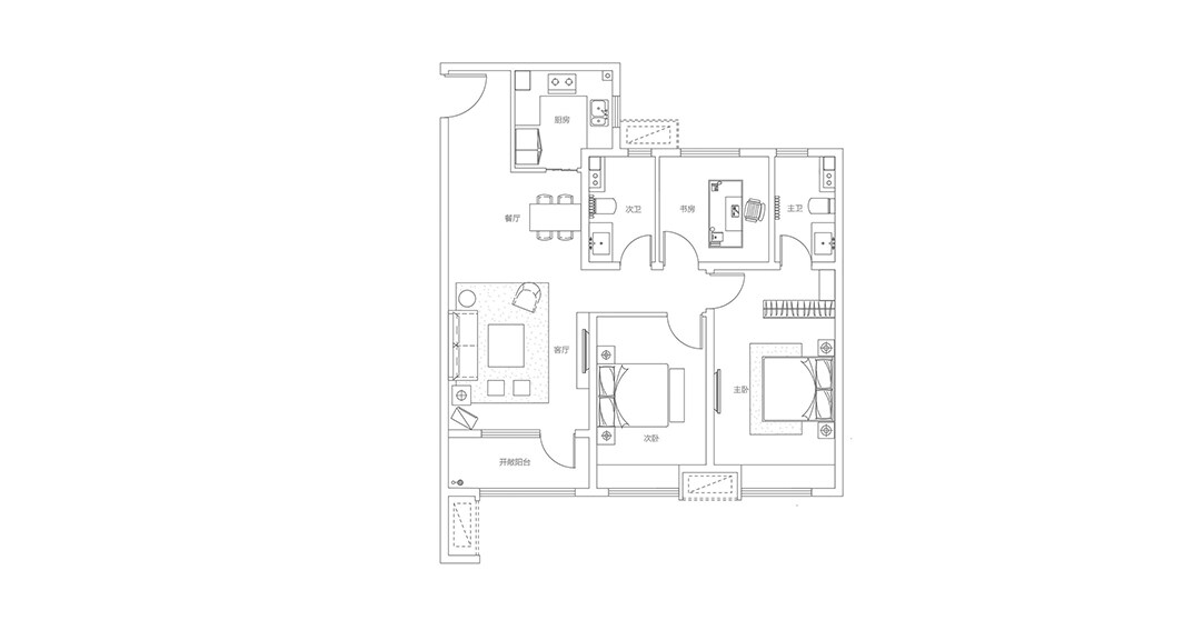 青特星城119㎡三室兩廳書(shū)房新中式風(fēng)格裝修案例效果圖