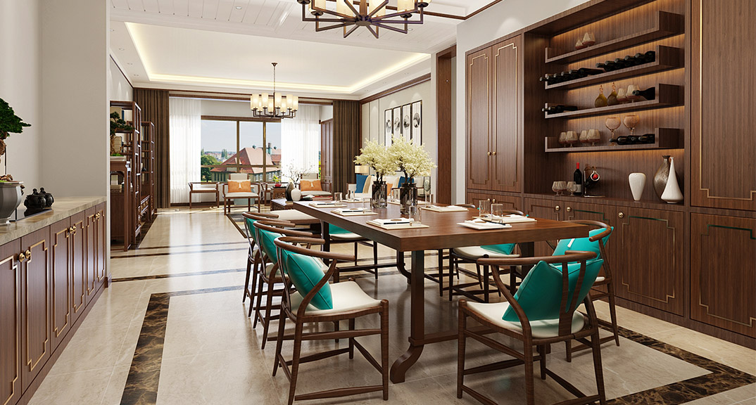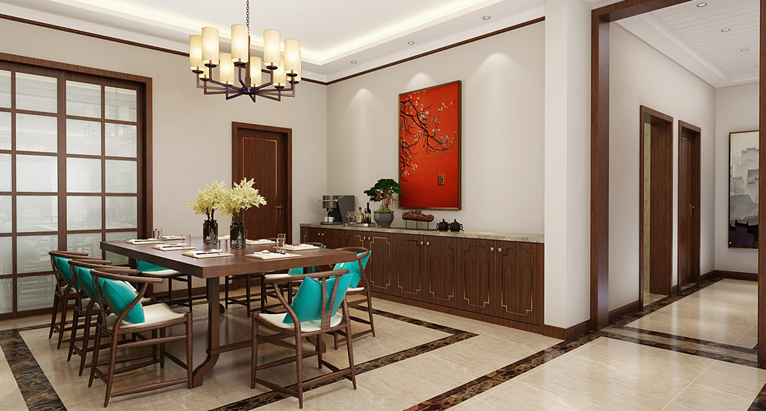 市直三區(qū)260㎡平層餐廳新中式風(fēng)格裝修案例效果圖