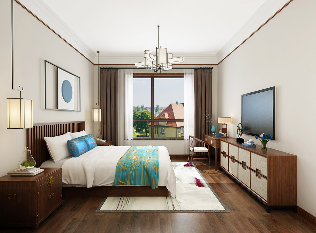 市直三區(qū)260㎡平層臥室新中式風(fēng)格裝修案例效果圖