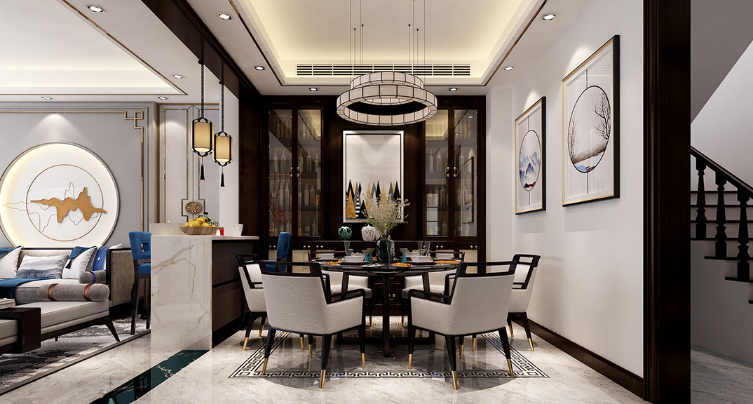 在設(shè)計(jì)新中式空間時(shí),選擇合適的燈具,會(huì)不經(jīng)意間增加了居室中的文化意境。在燈飾選擇上,不用刻意追求中國(guó)元素,盡可能選擇風(fēng)格現(xiàn)代造型簡(jiǎn)單,反而更能凸顯新中式的高級(jí)感。簡(jiǎn)潔的空間中,以柔和的淺色調(diào)為主,同時(shí)搭配簡(jiǎn)約時(shí)尚的新中式家具,沒(méi)有繁雜和冗余的造型與結(jié)構(gòu),直線感的空間給予中式藝術(shù)更多表達(dá)的余地,在整個(gè)空間及軟裝設(shè)計(jì)上突出清新淡雅、內(nèi)斂含蓄,亦張亦弛中彰顯東方雅韻。